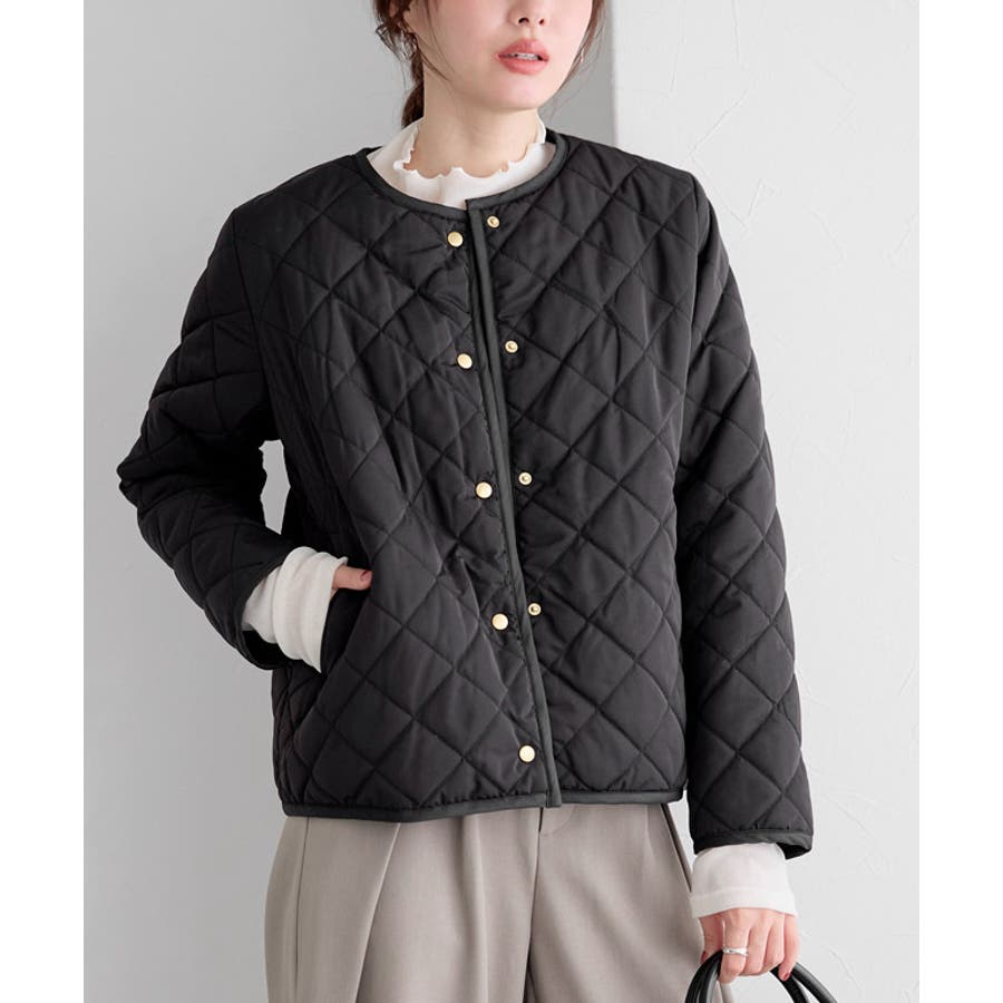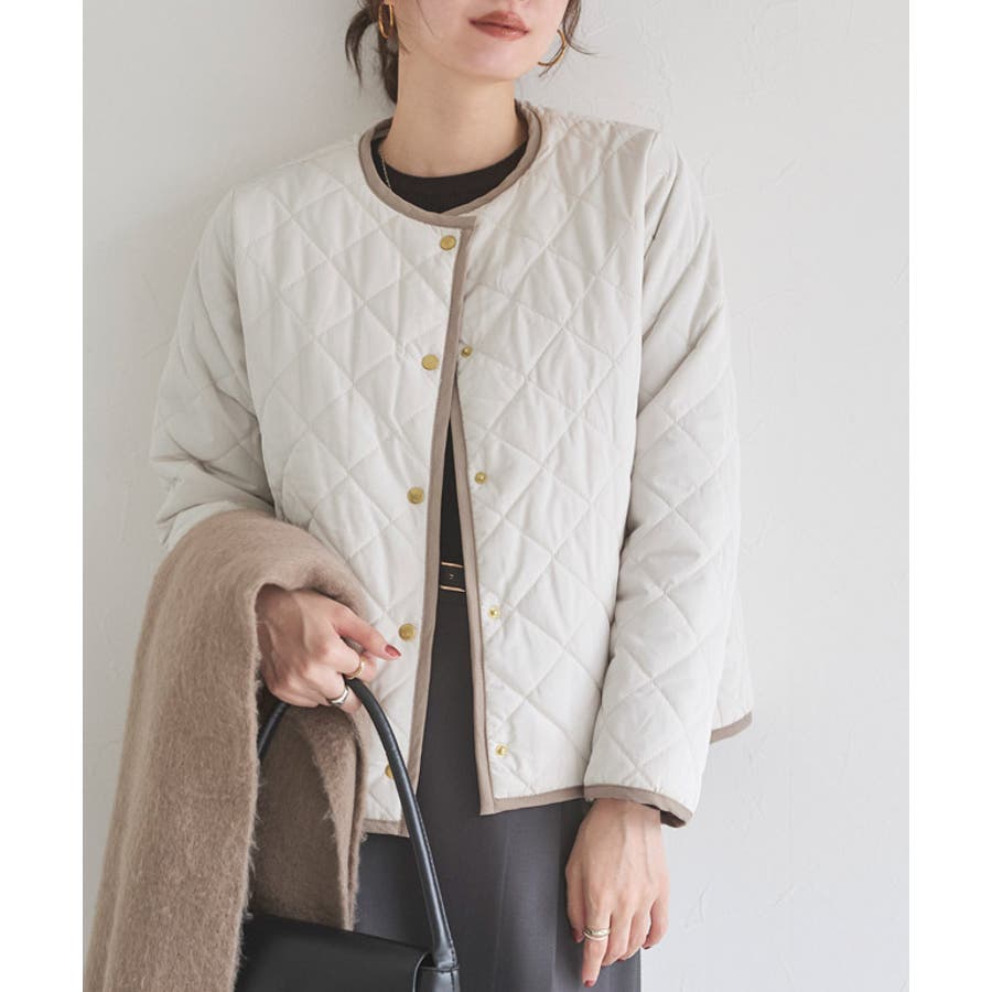 さらっと羽織れる軽さでストレスフリーな着心地の中綿入りキルティング素材を使用。ツヤを抑えたマットな表面感がカジュアルすぎず、程よくきれいめな印象に導きます。