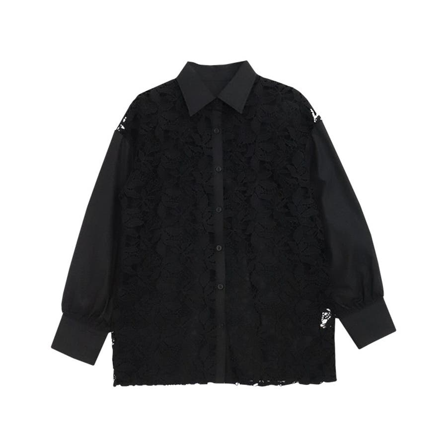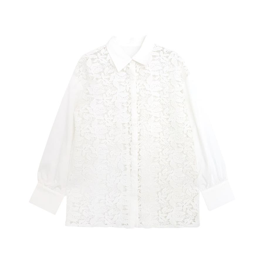 華やかな大ぶりのケミカルレースが魅力。袖と後ろ身頃は綿混素材でさらっとした着心地です。