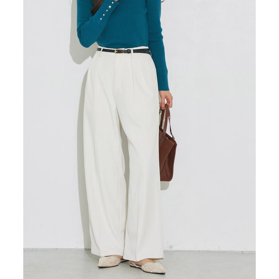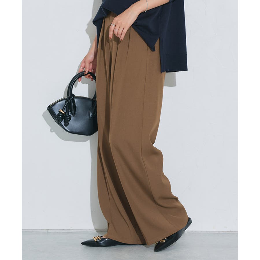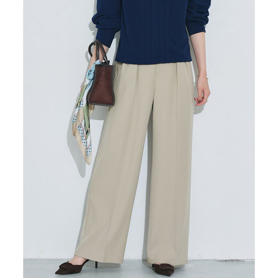 滑らかな肌触りが魅力的な素材を使用し、落ち感があり大人な雰囲気に仕上げてくれて楽な穿き心地なのに美脚見えする一枚。