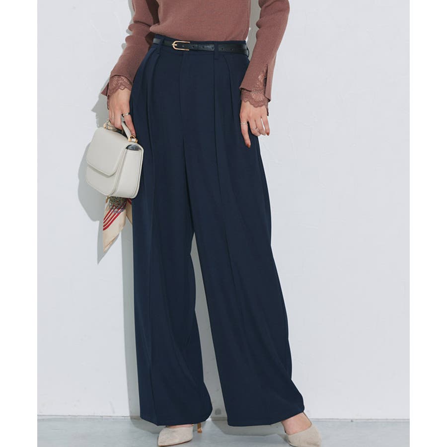 【ネイビー】センタープレスタックワイドパンツ センタープレス タック