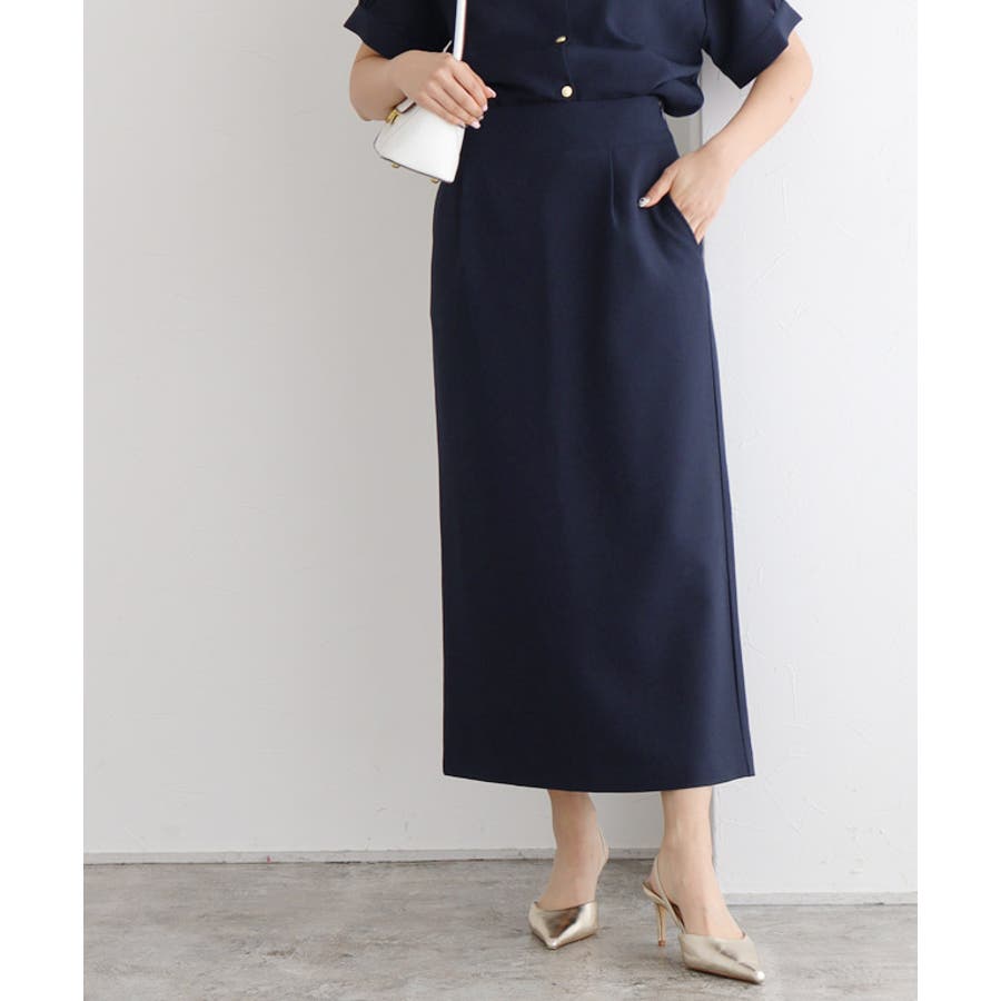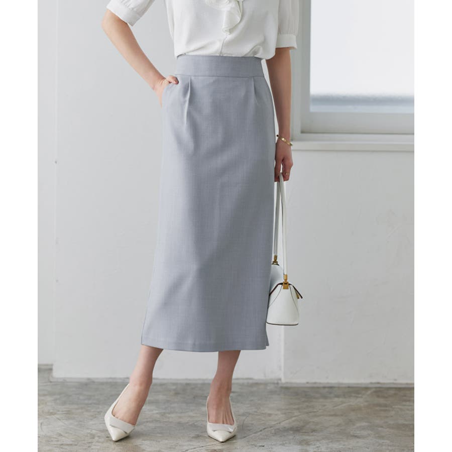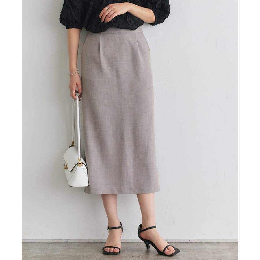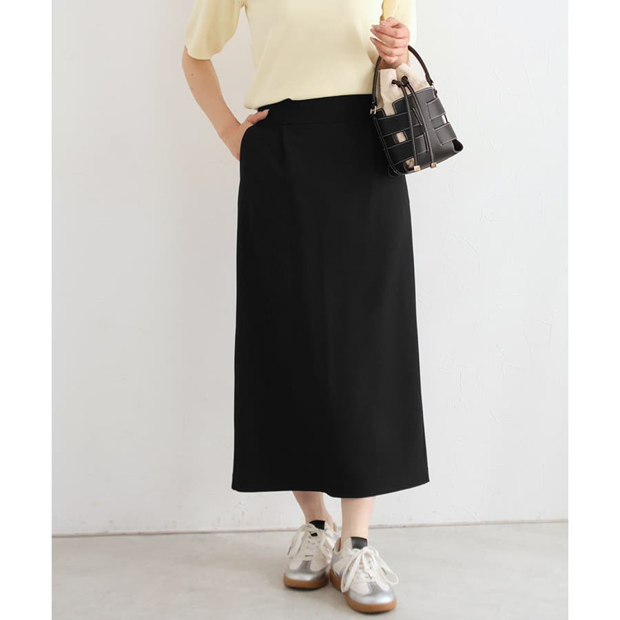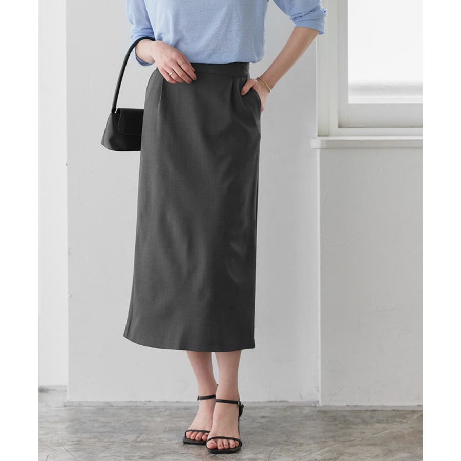 シンプルなデザインですっきりとした印象に導いてくれるIラインスカート。ベルト部分が少し太いハイウエストデザインがスタイルアップ見せを叶えてくれます。ブラウスやジャケットに合わせてきれいめでも、Tシャツを合わせてカジュアルスタイルとしてもON/OFF活躍できるアイテムです。