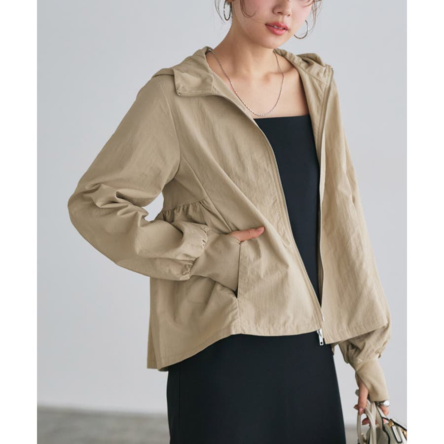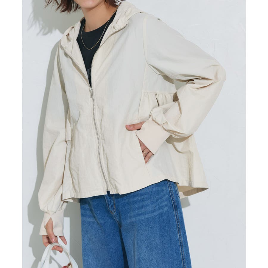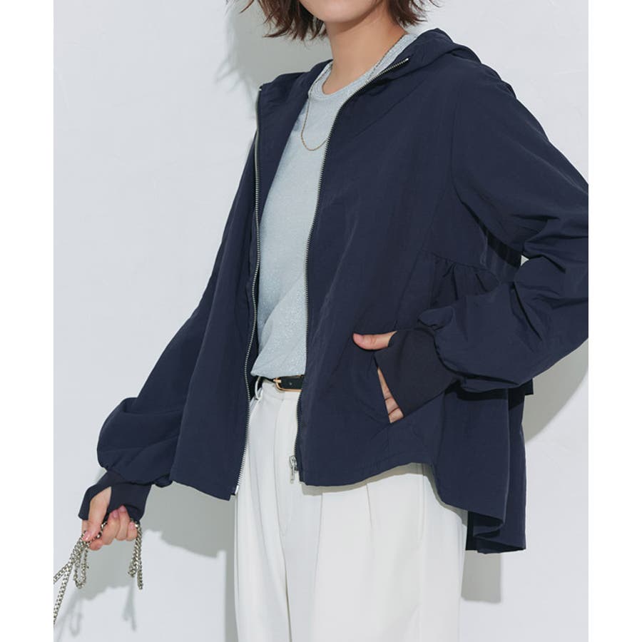 フェミニンさをプラスするバックフリルデザイン。切り替え位置を前にも持ってくることで、フロントから見てもこなれた雰囲気に。首元、手首も紫外線から守るディテールに仕上げたところもポイントです。