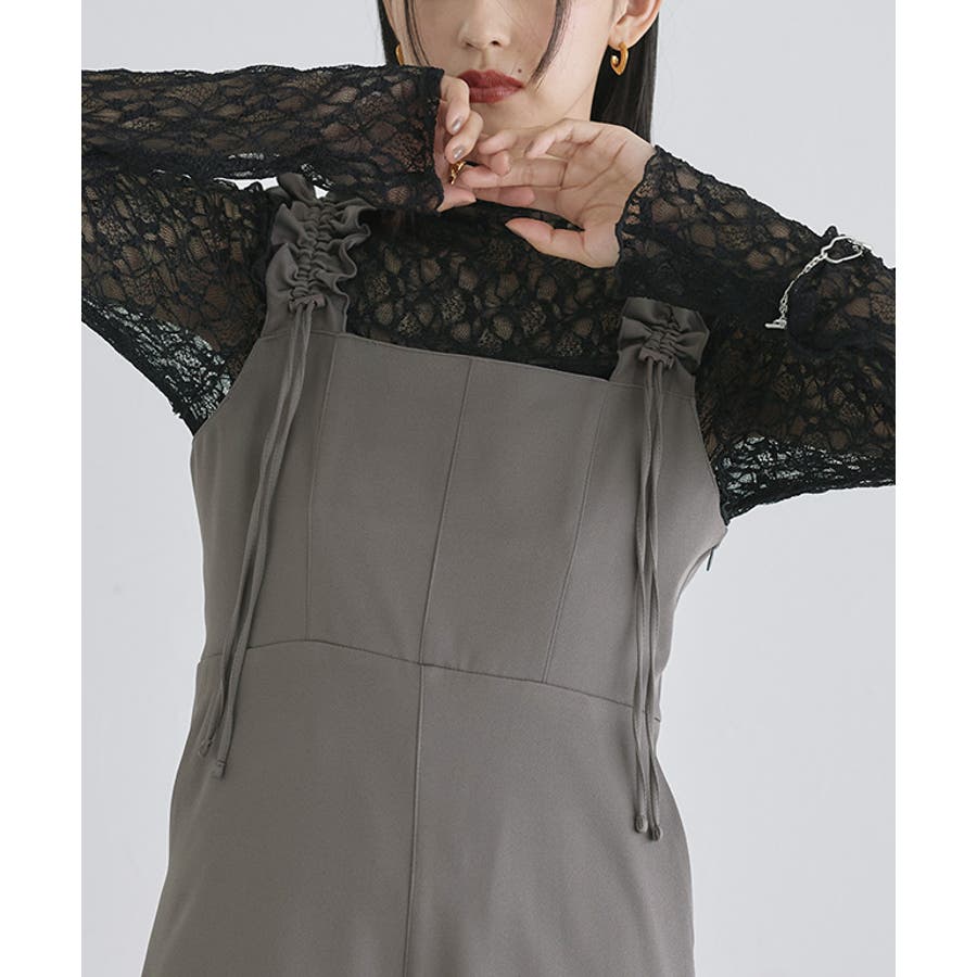 一枚着はもちろんのこと、ジャンスカやビスチェなどとレイヤードスタイルに程よい抜け感と華やかさをプラスしてくれます。