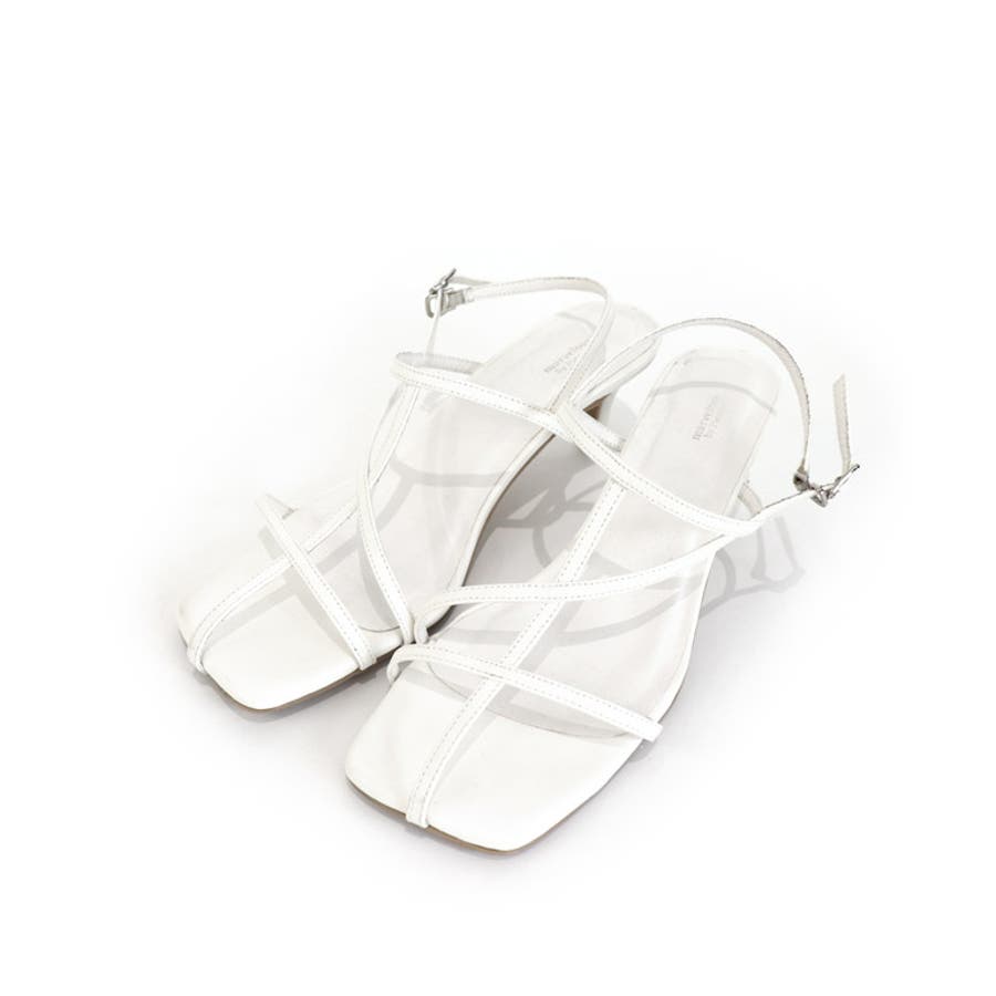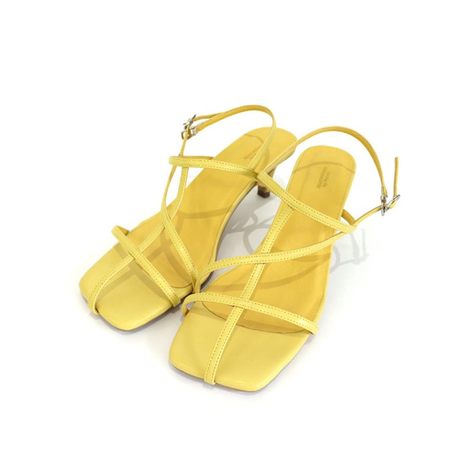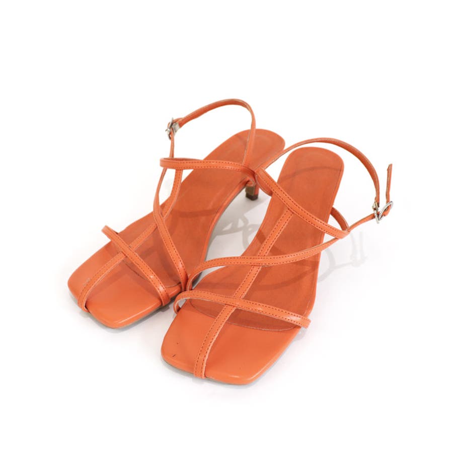 スクエアトゥがスタイリングに大人な抜け感をプラスしてくれ、Tストラップも華奢にすることで女性らしさを引き立ててくれる一足に仕上げました。