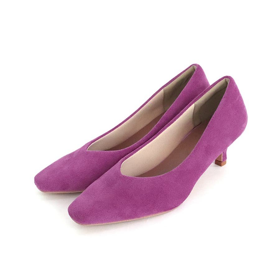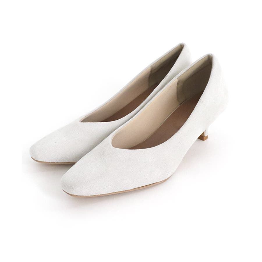 スクエアトゥがスタイリングに程良い抜け感をプラスし、アッパー部分をVカットにすることで大人の女性らしさを演出します。高すぎないヒールで疲れにくいところも嬉しいポイント◎