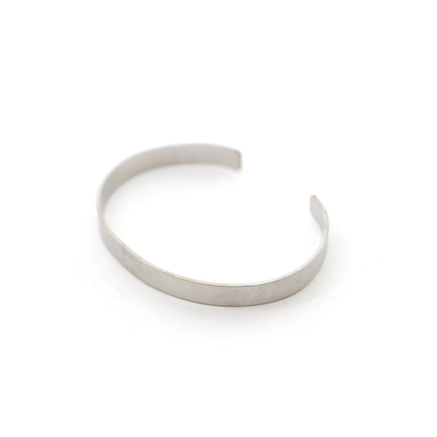 一つ一つ職人が丁寧に曲げ加工を施したこだわりの一点。ツヤ感のあるコーティングは素肌に触れるからこそ安心できるニッケルフリーのもの。伸縮が可能なので、お好みのサイズに調整できます。