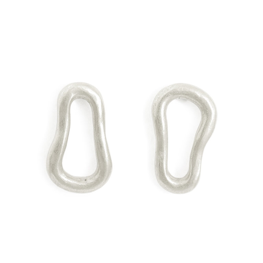 メタルリングをアシンメトリーにあしらったピアス。リングパーツはぷっくりとした丸みのあるフォルムを採用し、女性らしさを演出。国内の職人が手作業で作り上げた型も魅力ポイントです。