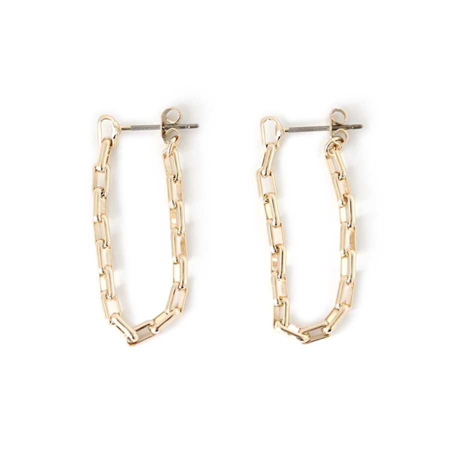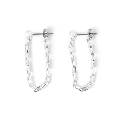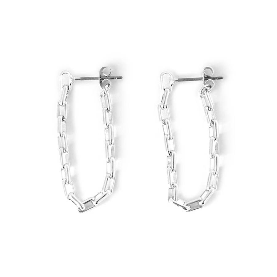 職人が細部まで丁寧に作り上げた、チェーンピアス。コーティングはツヤ感のあるゴールドとシルバー仕上げ。
