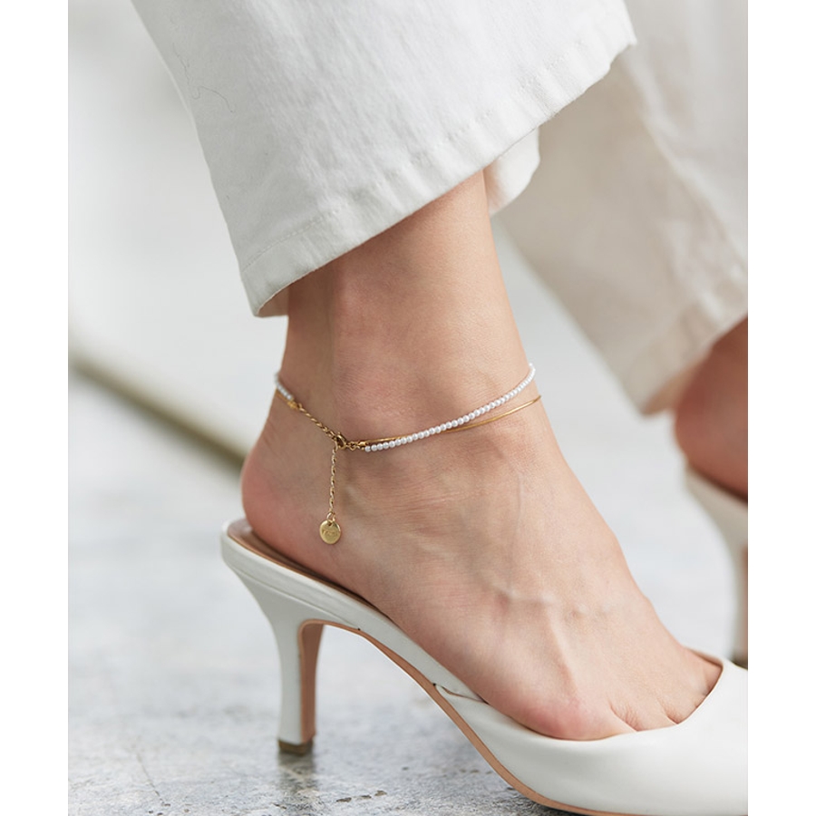 シンプルながらも春~夏にかけて肌が見える中にも、さりげないアクセントとしてご着用いただけるアンクレット。パールとチェーンのシンプルながらもお互いを引き立てあうデザインに仕上げました。