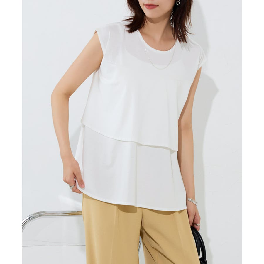 ティアードフリルが目を惹く着映えカットソー。さり気なく肩周りをカバーしてくれるフレンチスリーブが嬉しいポイント。程よくゆとりのあるサイズ感なので窮屈感なく着用いただけます。ON/OFF着回しの効く一枚です。