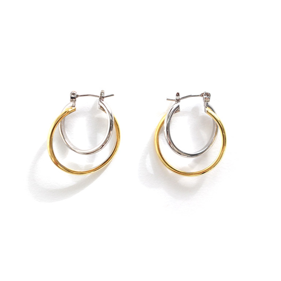 バイカラーリングメタルピアス ピアス フープピアス バイカラー連 ゴールド