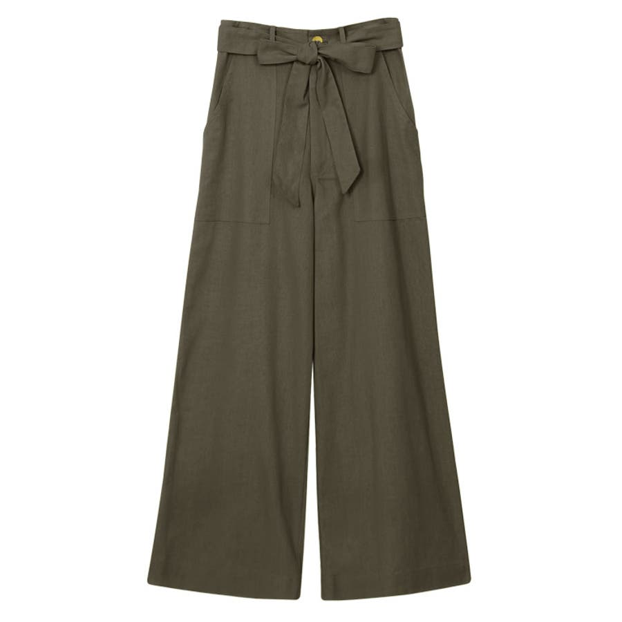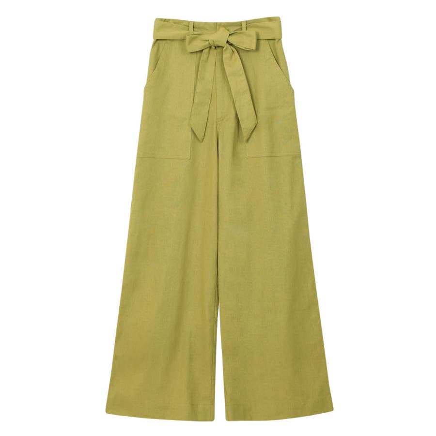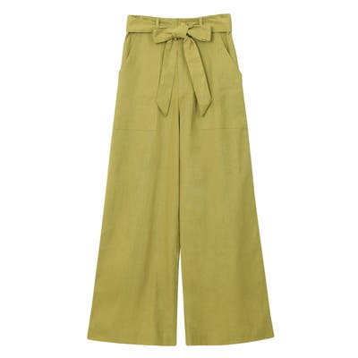 【CanCam8月号掲載アイテム】ウエストリボン付き 麻混ワイドパンツウエストリ…