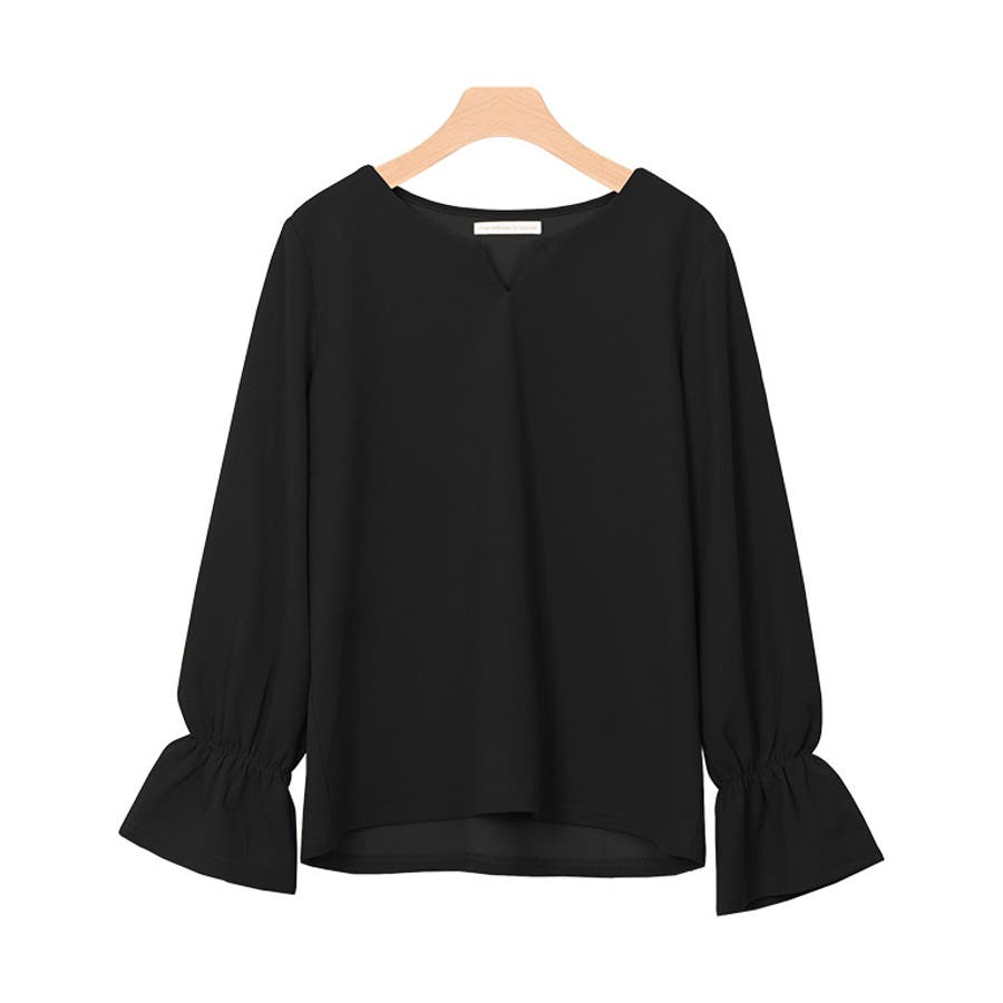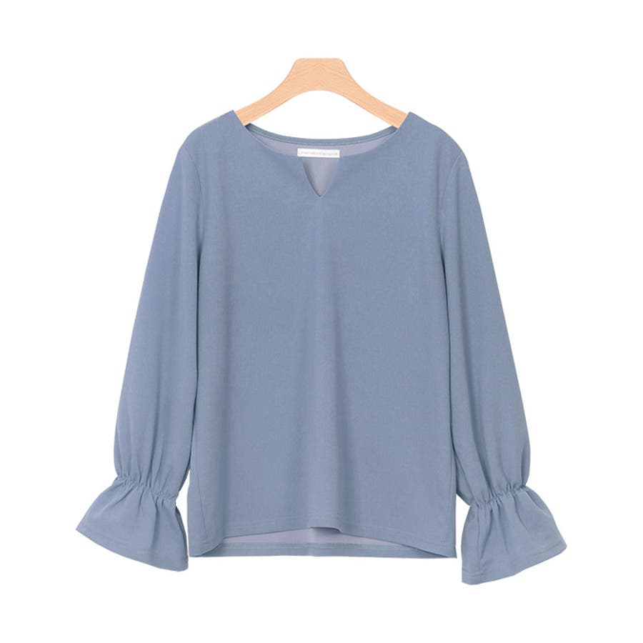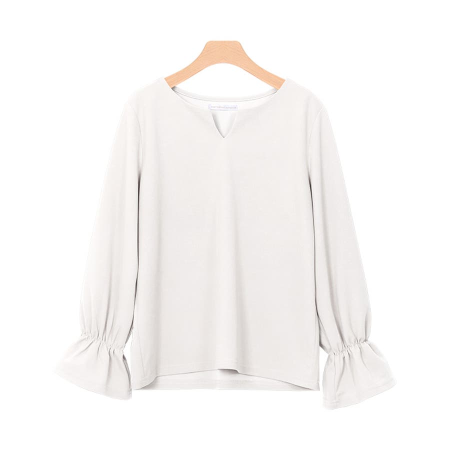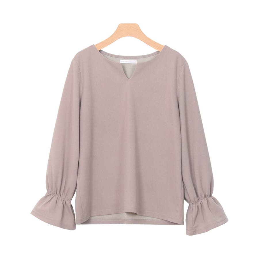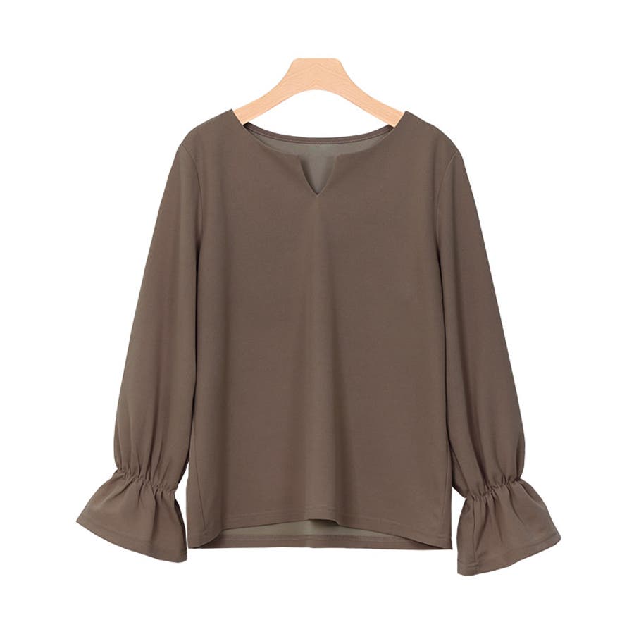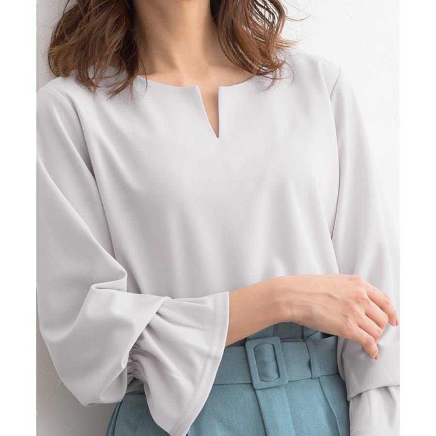 程よい抜け感をメイクしてくれるキーネックはデコルテをキレイに演出。ボリュームのあるキャンディスリーブが華奢見え効果も◎