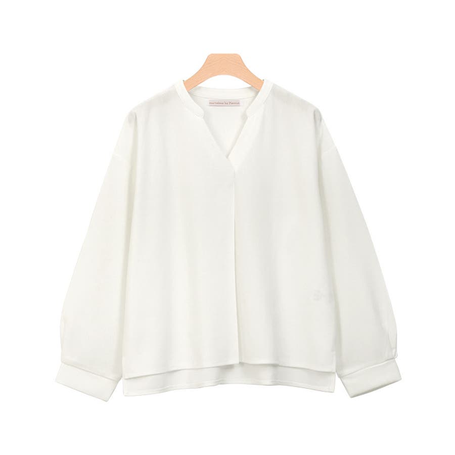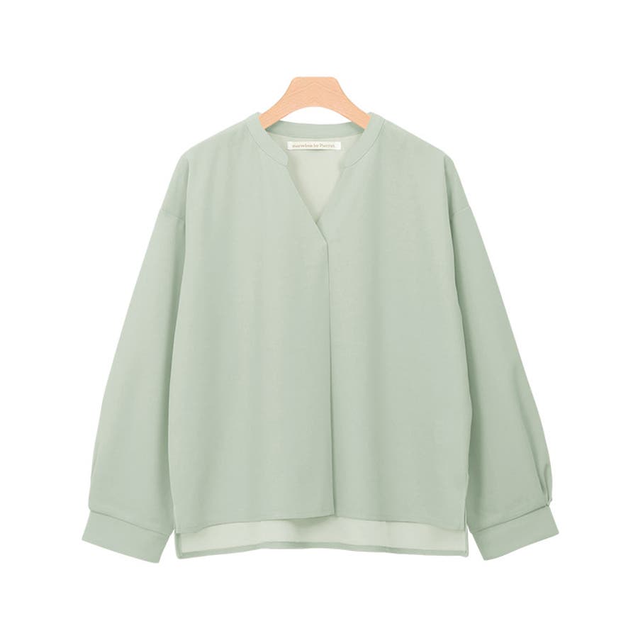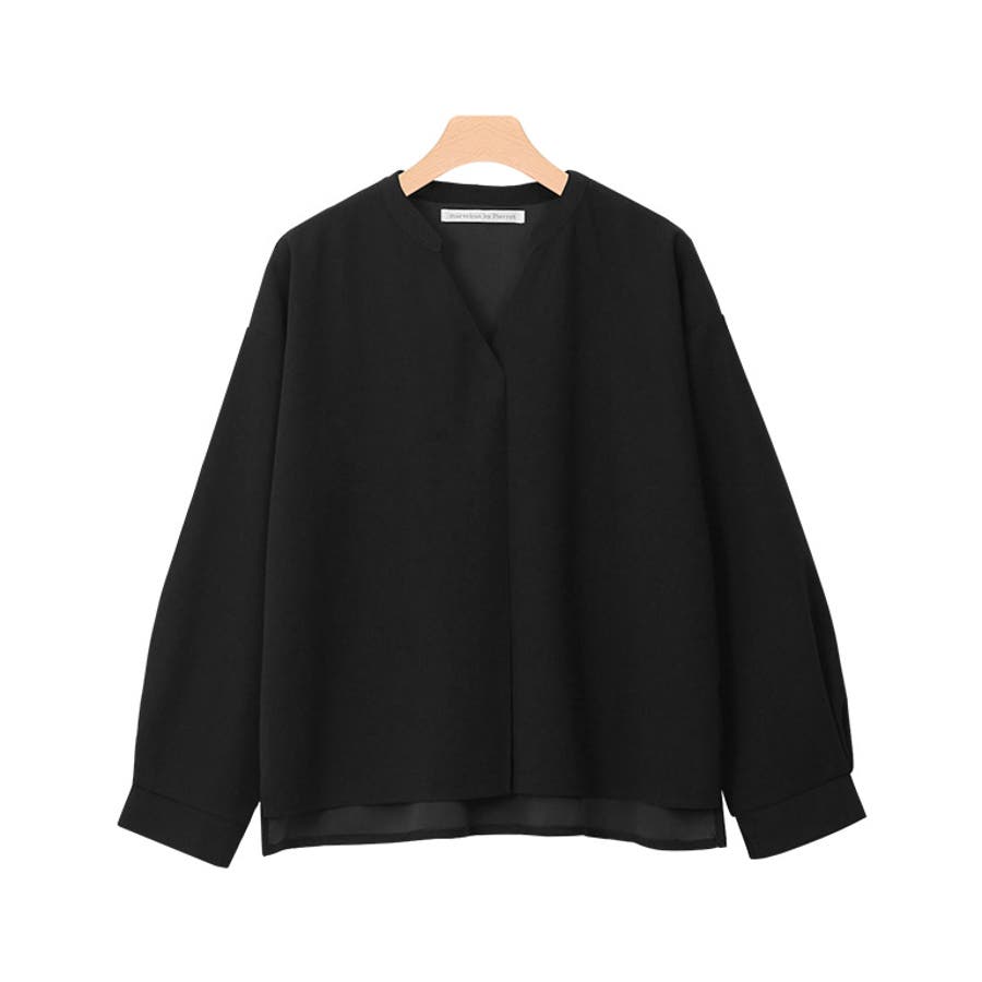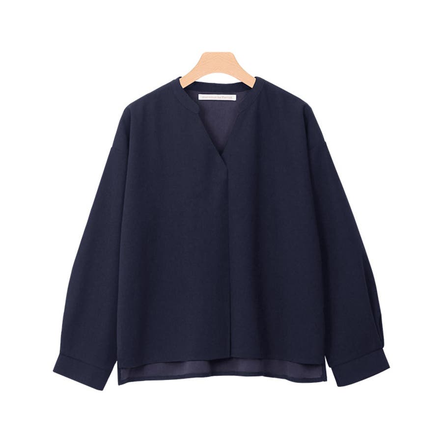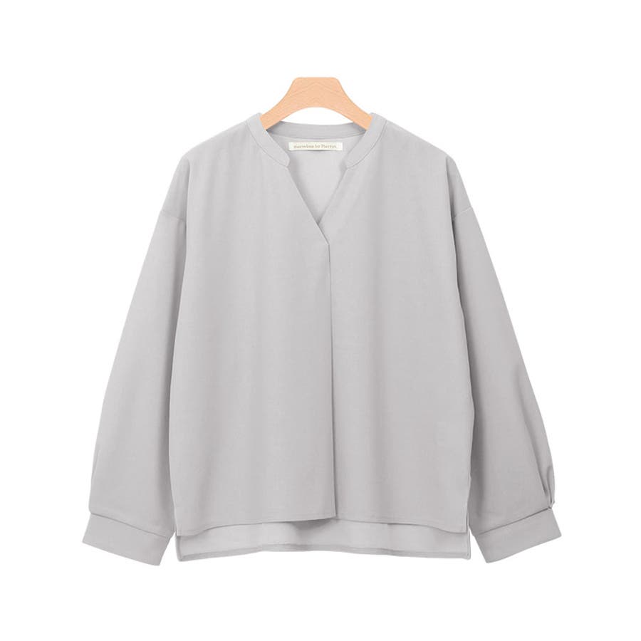 ノーカラーデザインTブラウス ブラウス シャツ カットソー 長袖 ノーカラー