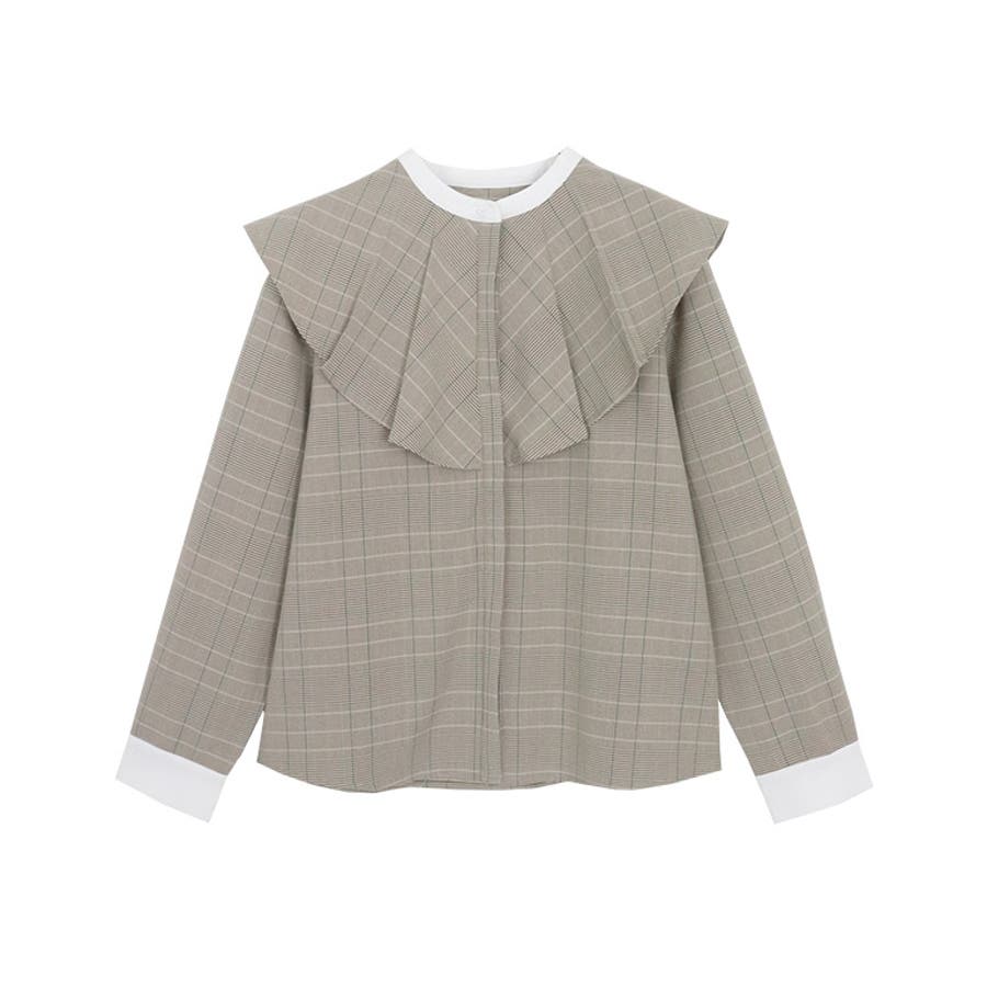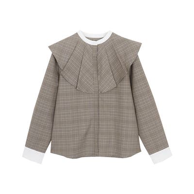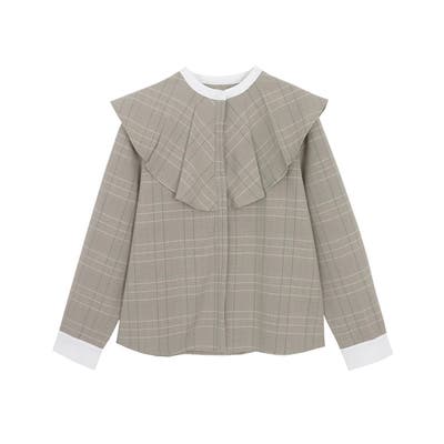 チェック柄クレリックフリルカラーブラウス ブラウス フリルカラー