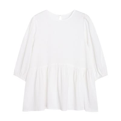 シボ感のある素材が表情をプラスし、涼しげな印象に。薄手で柔らかく軽い着心地です。