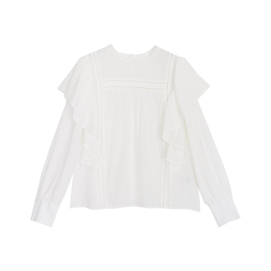 身頃や襟にレースをあしらい、レディライクな雰囲気に。身頃や襟にレースをあしらい、レディライクな雰囲気に。前後での着用や袖の取り外しが可能なので、ロングシーズン着用できるのが嬉しいポイント。