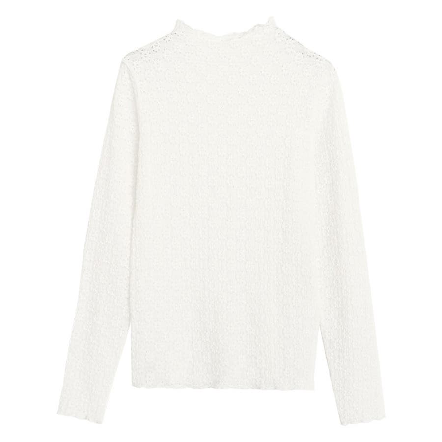 さりげない花柄と程良い透け感のあるレースが女性らしさ溢れる素材使い。綿混で伸縮性があり着心地の良い一枚です。
