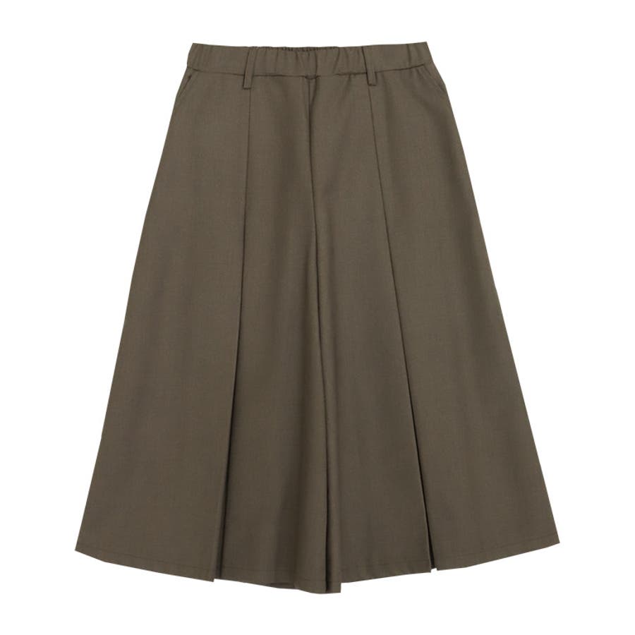 フロントに施したタックデザインがこなれ感を演出。裾に向かって程よく広がるシルエットがきれいで、足さばきしやすいところも魅力の一つです。バランス良く見せてくれる丈感にもこだわり、大人が穿きやすい一枚に仕上げました。