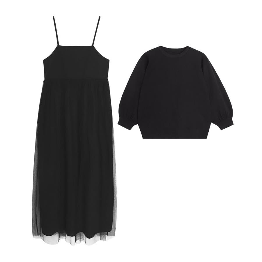 バルーンニットセットチュールキャミワンピース キャミワンピース スポンジニット