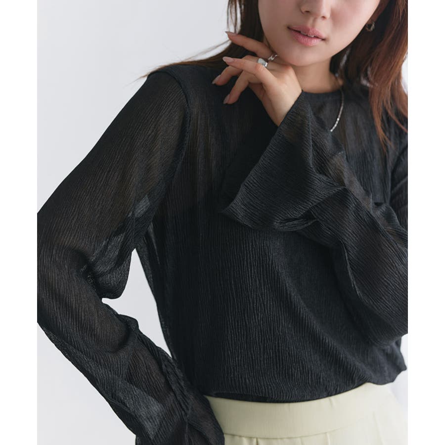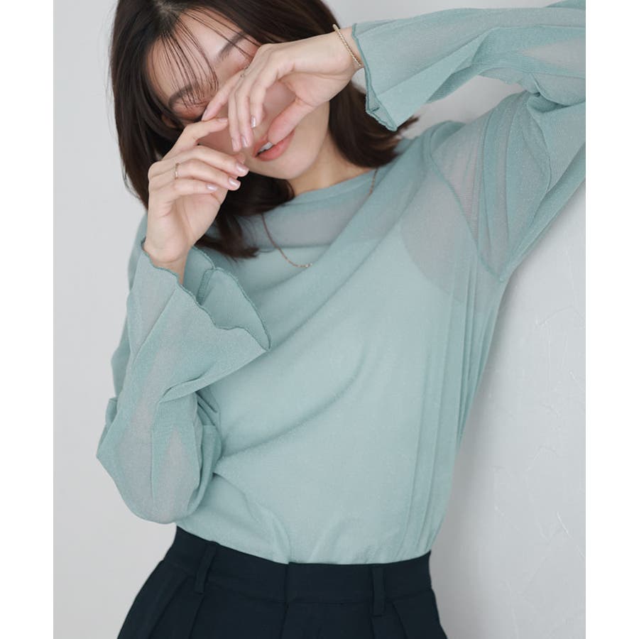 フレアスリーブデザインが目を惹くシアーカットソー。程良いサイズ感に仕上げ、一枚着でもレイヤードスタイルも着やすい一枚に。