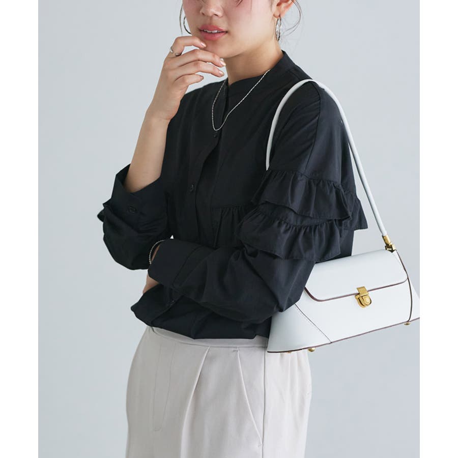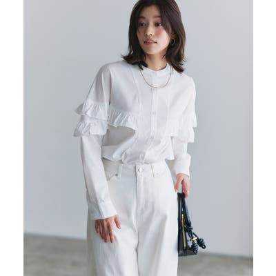 スタイリングを華やかな印象へと導くフリルデザイン。長めの着丈が体型カバーをしてくれるので、さらっと着用していただけます。袖デザインはややボリューム感を持たせ、フリルも相まって、フェミニンなスタイリングにオススメ。