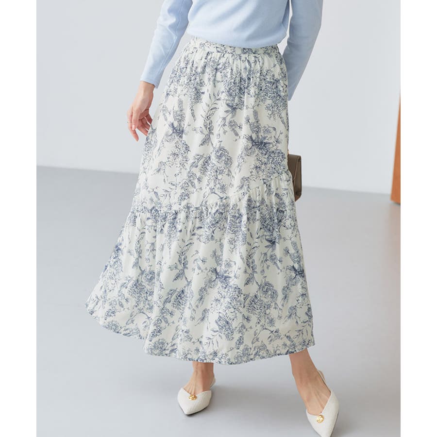 ブラック系は小花柄、アイボリー系はトワルドジュイ風のプリント柄を施しトレンド感漂う一枚。滑らかで落ち感のある素材が大人な雰囲気に導いてくれます◎