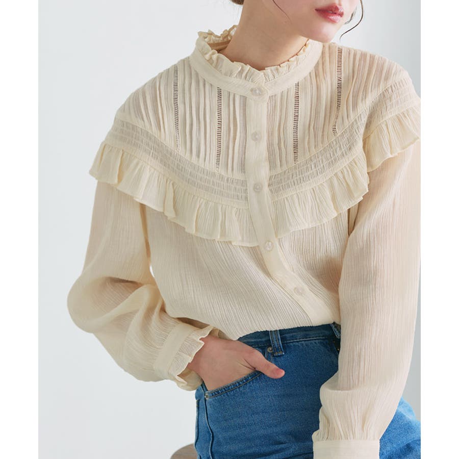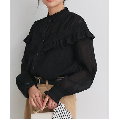 フリルシャーリングブラウス 大人 フェミニン