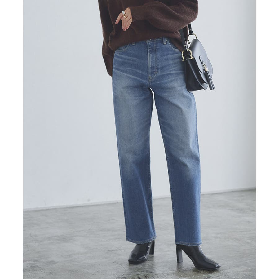 すとんと落ちるストレートラインが脚のラインを拾いにくく、大人のこなれたシルエットを演出します。ビンテージ風のウォッシュ加工で履きならしたような風合いに仕上げました。バックポケットは大きめに設定し小尻効果のあるデザイン。オリジナルブランドのレザーパッチはミニマルに仕上げました。