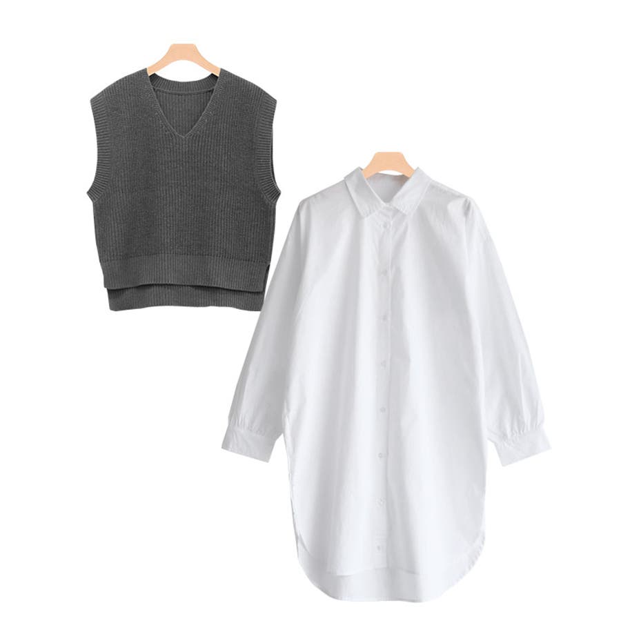 ニットベスト×ロングシャツセット ブラウス シャツ ベスト ニット