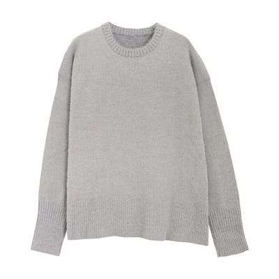 ふわふわのシャギー素材がふんわり柔らかな印象へと導きます。チクチク感のない包み込まれるような心地よい着心地も魅力の一つ。