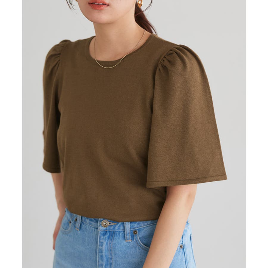 ギャザーフレアスリーブニット ニット フレア袖