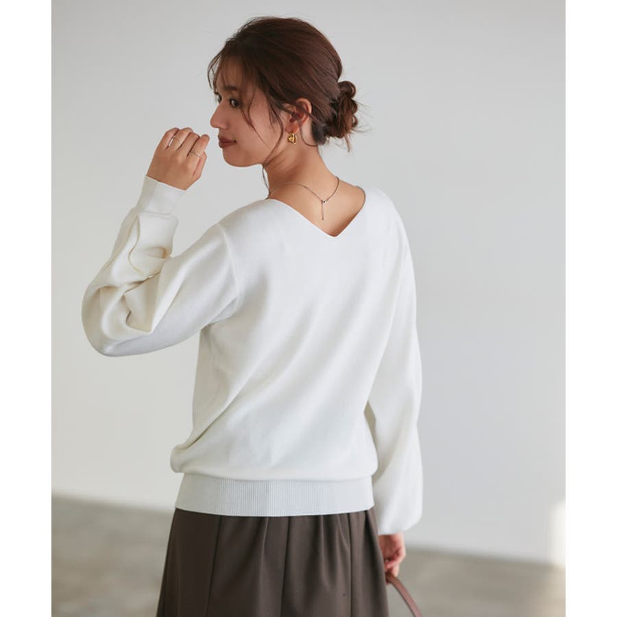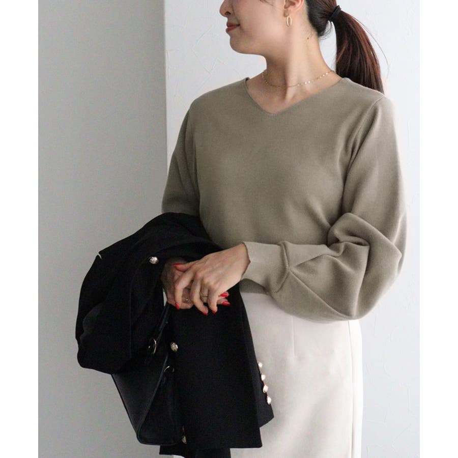 パフスリーブとシンプルな身頃のデザインが、華奢見えするメリハリあるシルエットに。 ネックラインは上品な印象のVネックとON/OFFどちらも決まるボートネックの前後2way仕様。 真夏以外のロングシーズ着用できる、フェミニンなロングスリーブで、女性らしいスタイリングが完成します。