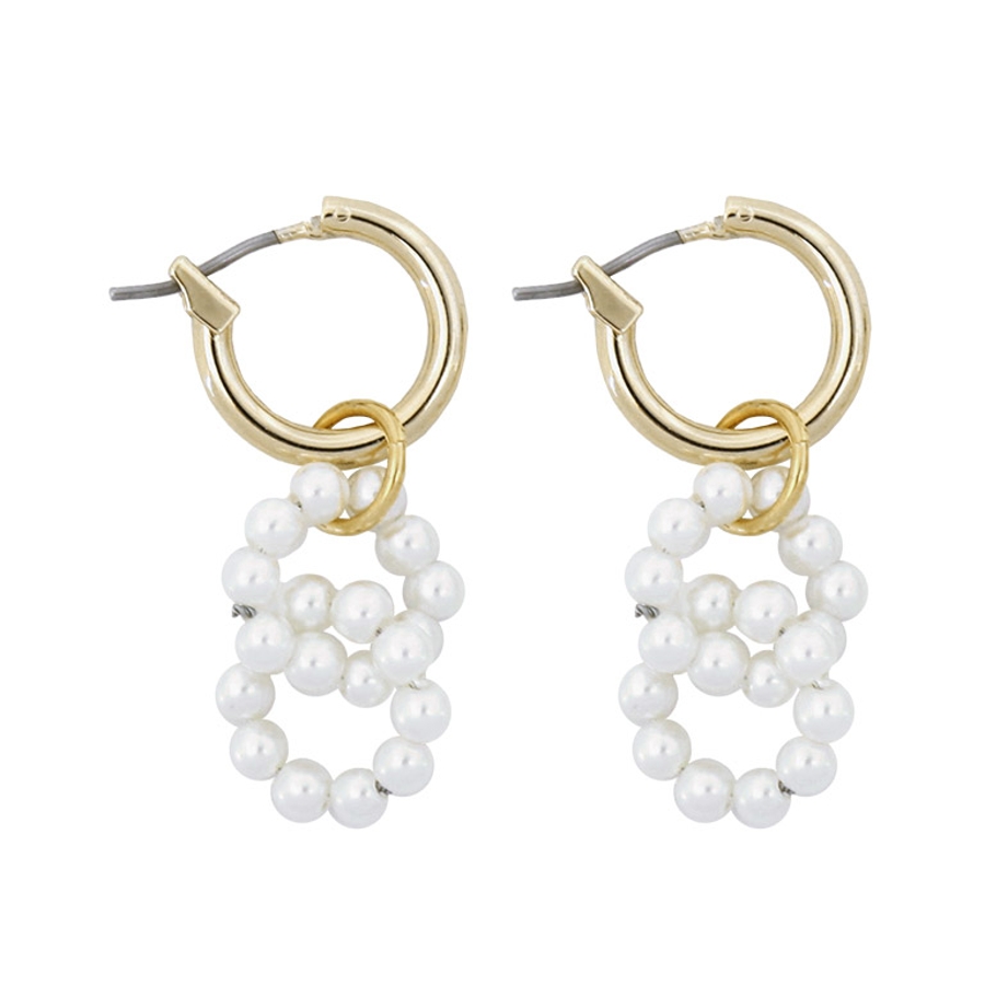 シンプルな遮断機型フープピアスと、カラーにこだわったイミテーションパール。