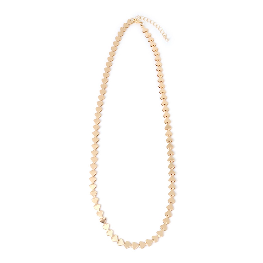 さりげないハートモチーフをつなぎ合わせたデザインチェーン。存在感のあるハートが身につけるだけで、スタイリングにほんのりとフェミニンな印象をプラスしてくれます。