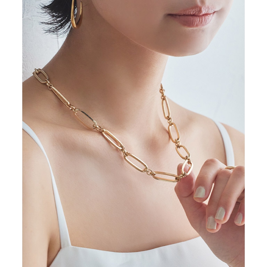 シーズンレスに着用できるようなデザイン。チェーンはオリジナル性のある、シグネチャーリンクでアクセントになる1本です。