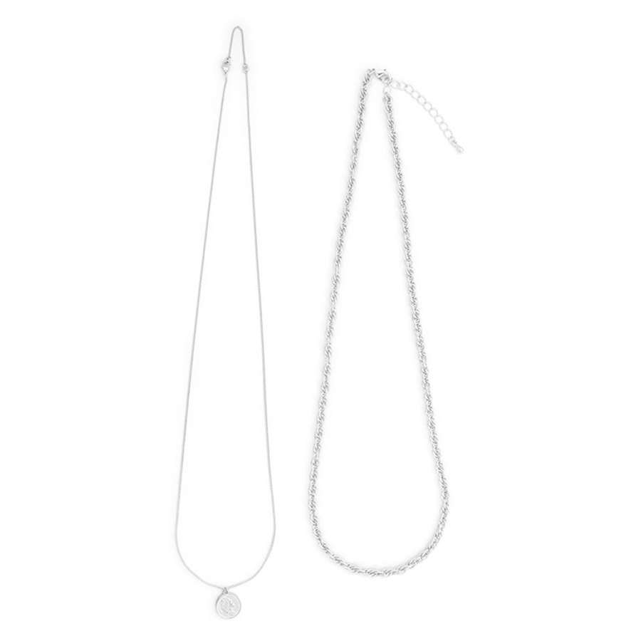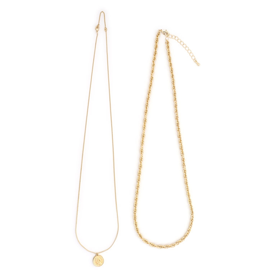 メダルトップのロングネックレスと、ロープチェーンのアクセントになるミドルの2本セットです。セットはもちろん別々でもご着用いただけます。
