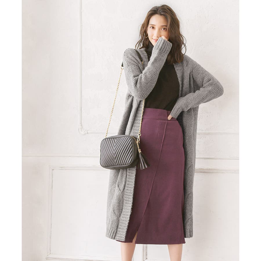 フロントに施した立体感のあるケーブル編みは、季節感もプラスしコーデのアクセントにも。ロング丈のデザインが大人なイメージに仕上げ、気になる体型もカバーします。肩の落ちたゆるめのシルエットが、女性らしさをより醸し出します。