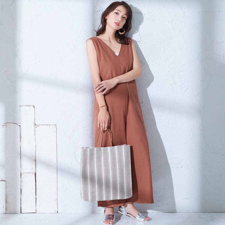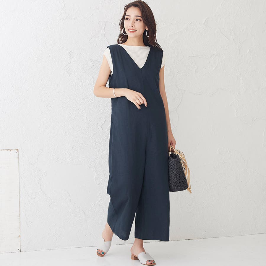 ゆったりとしたシルエットで体型カバーしつつ、オールインワンが1枚でもサマになるアイテム。