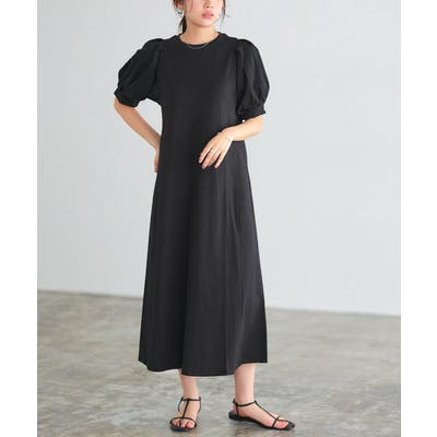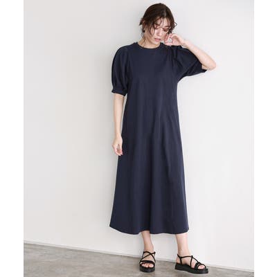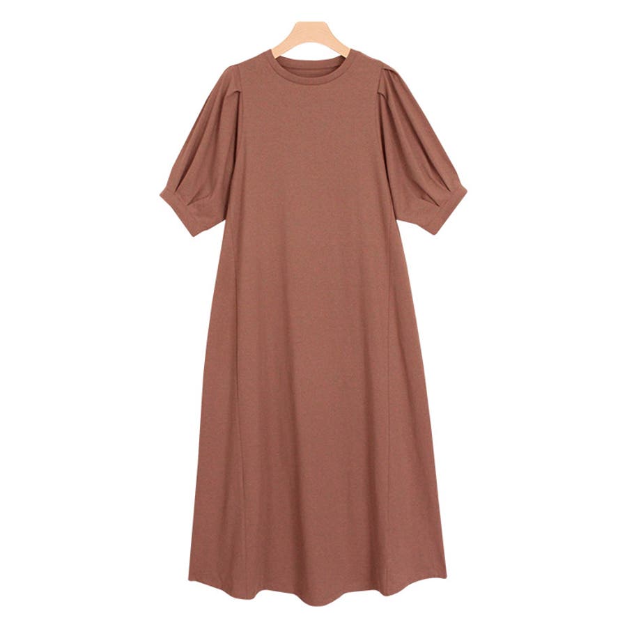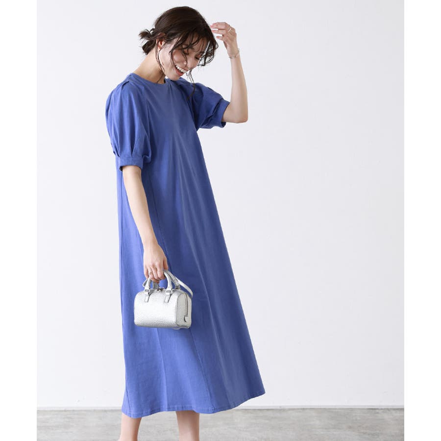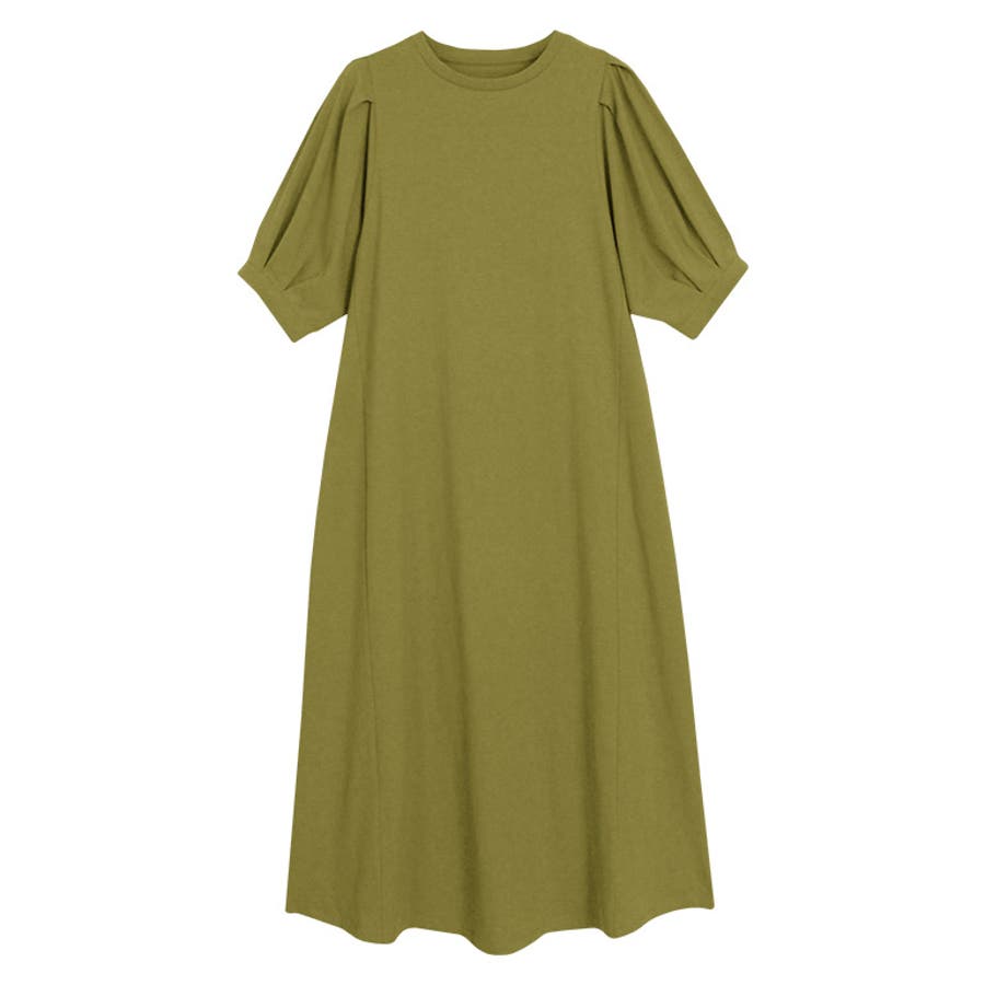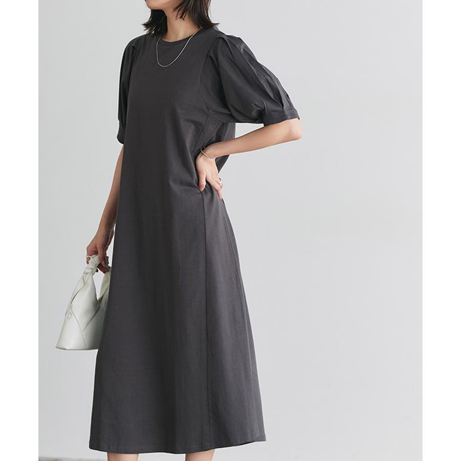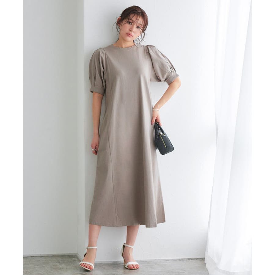 肩と袖口にタックを施し、ボリュームのあるパフスリーブに仕上げたワンピース。肩周りや二の腕をカバーしてくれるところも魅力の一つ◎ふんわり広がるAラインシルエットが女性らしい雰囲気の一枚です。