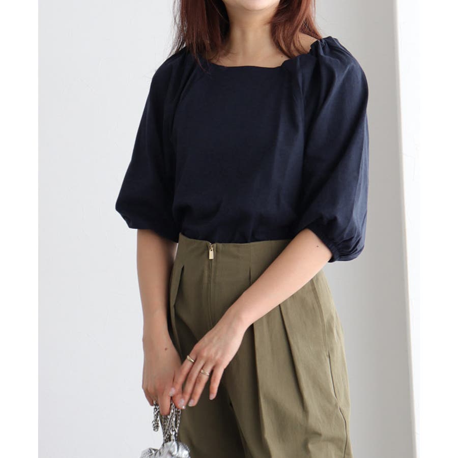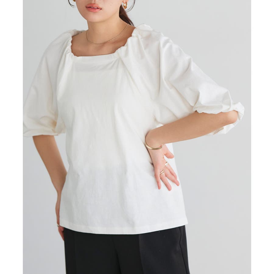 シンプルなパフスリーブTシャツとして、トレンドのオフショルとしても着られる2wayデザイン。合わせるアイテムやシーンによって雰囲気を変えて着用できます。シルエットはシンプルなのでボトムスを選ばず着回しやすい一枚です。