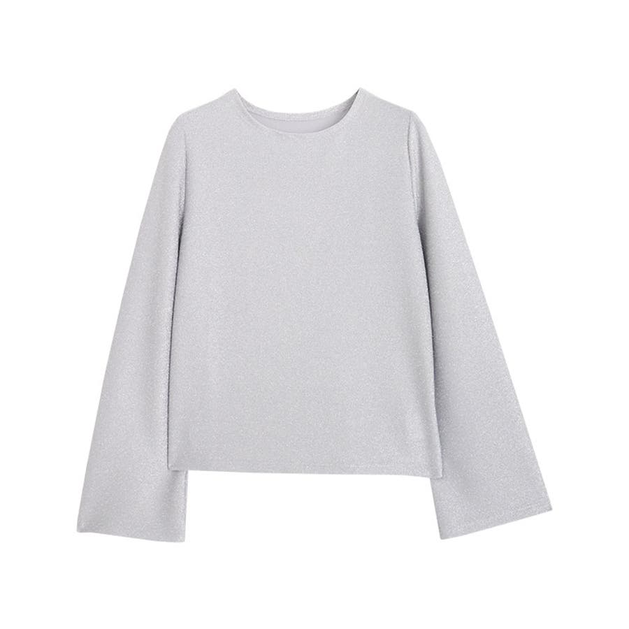 トレンド感のあるラメトップス。ストレッチの効いた動きやすいニットソー素材で取り入れやすのが魅力です。