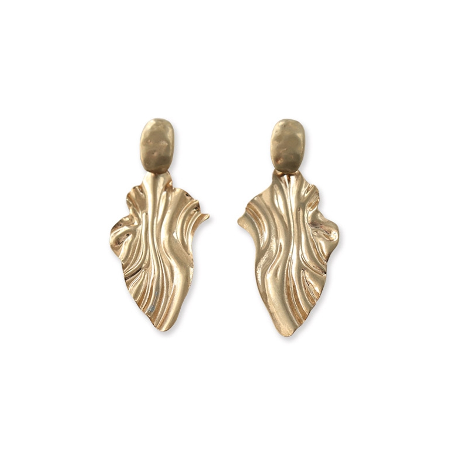 不規則なテクスチャーの入った、波型プレートはやや大きめのものでアクセントをプラスします。トレンド感を顔周りに差してくれる優秀アイテム。