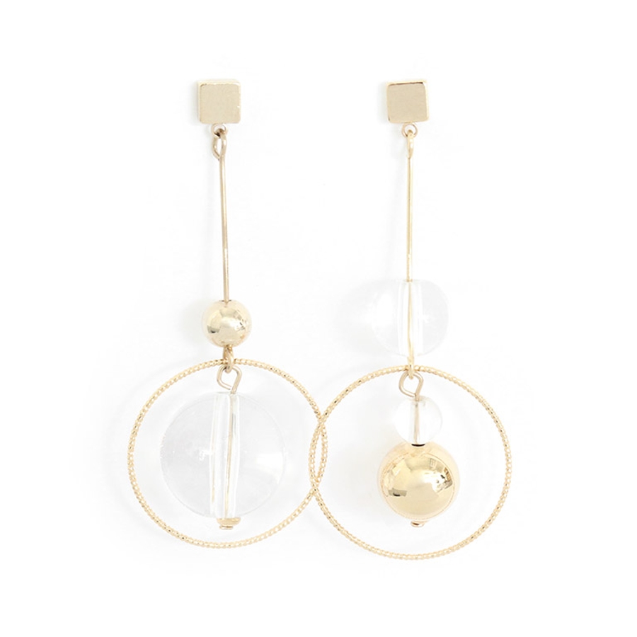 アシンメトリーのデザインと、ゴールドのカラーリングにクリアパーツの相性が、大人っぽい雰囲気にスタイリングを格上げします。パーツを繋ぐ線形も極細のものをあしらうことで、繊細で女性らしい印象に。