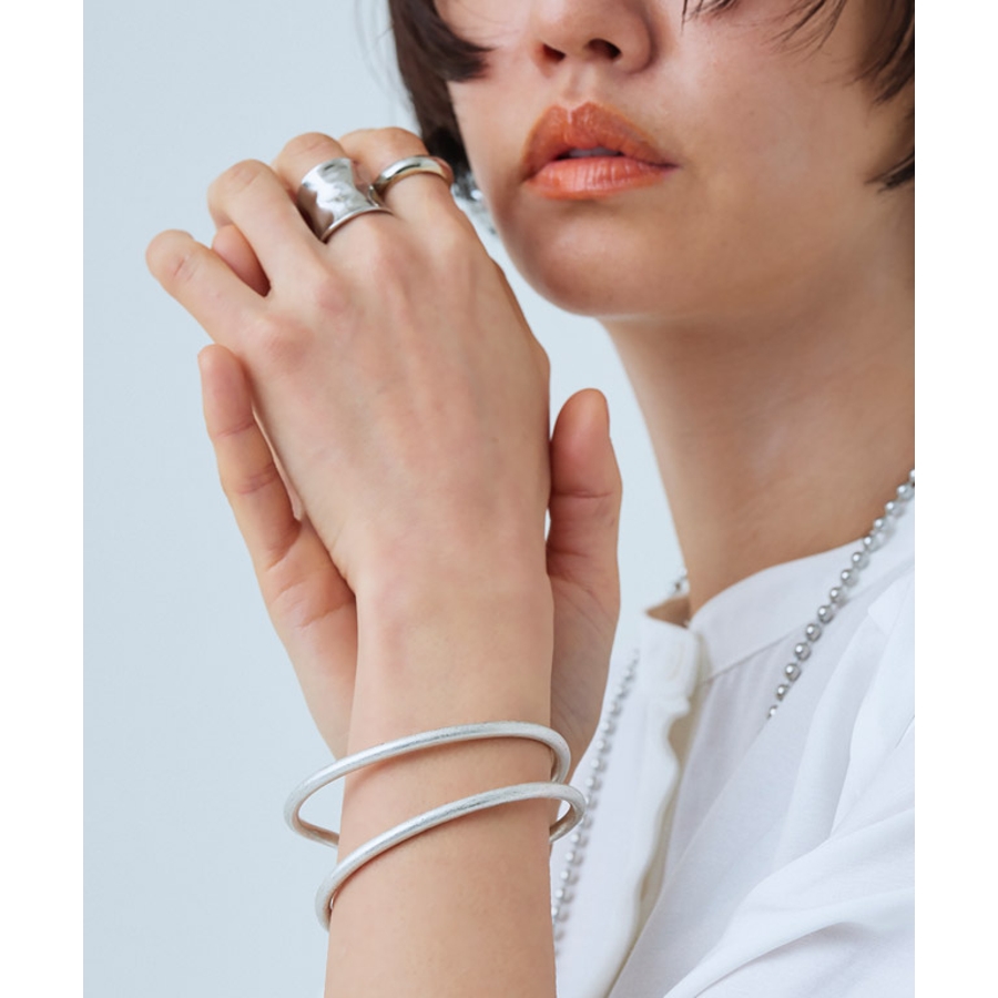 ニュアンスのあるフォルムとボリュームで、スタイリングの主役になるアイテム。2本の大きく緩やかなカーブが手首を優しく包みこみます。素肌の上でムードたっぷりの華やかさを演出して。レイヤードスタイルにもおすすめです。