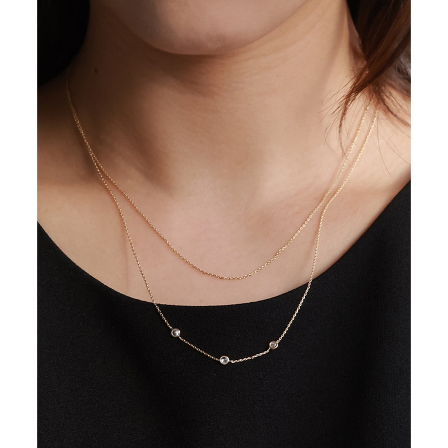 等間隔にストーンをあしらった一本と、シンプルチェーンがきらめきをプラスし女性らしさを演出します。