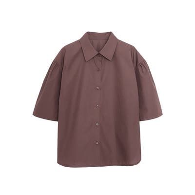 襟付きがきちんと感を演出してくれて、肩に施したギャザーでふんわりとした袖を演出し、気になる二の腕周りもカバーしつつ、女性らしい印象に導きます◎ボトムスを選ばない丈感に仕上げ、裾のラウンドカットがインをしなくてもこなれた装いになるようにしました。