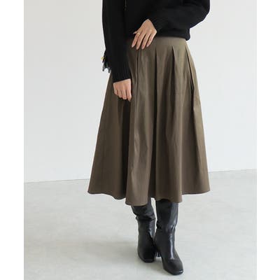 ウエスト周りに施したタックでふんわりと広がり、立体的なシルエットが女性らしい印象に◎ミドル丈がいつものスタイリングに合わせるだけで一気に旬なスタイリングへ導いてくれる一枚です。