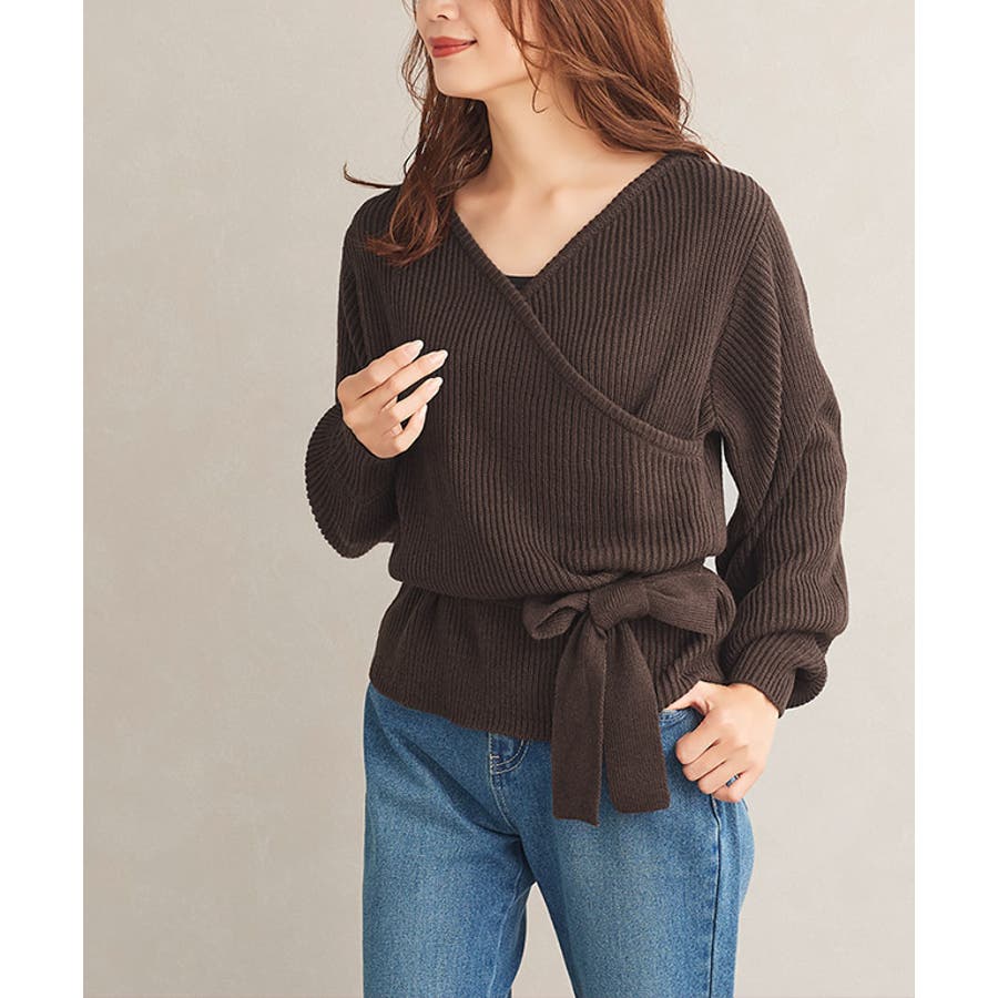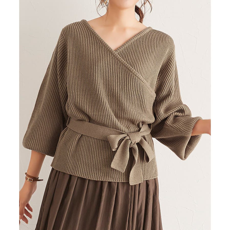 カシュクールデザインが旬なイメージをプラスし、女性らしい優しい雰囲気に。リボンでウエストマークすることで着丈も調節できるので、ボトムを選ばずコーディネートできます◎