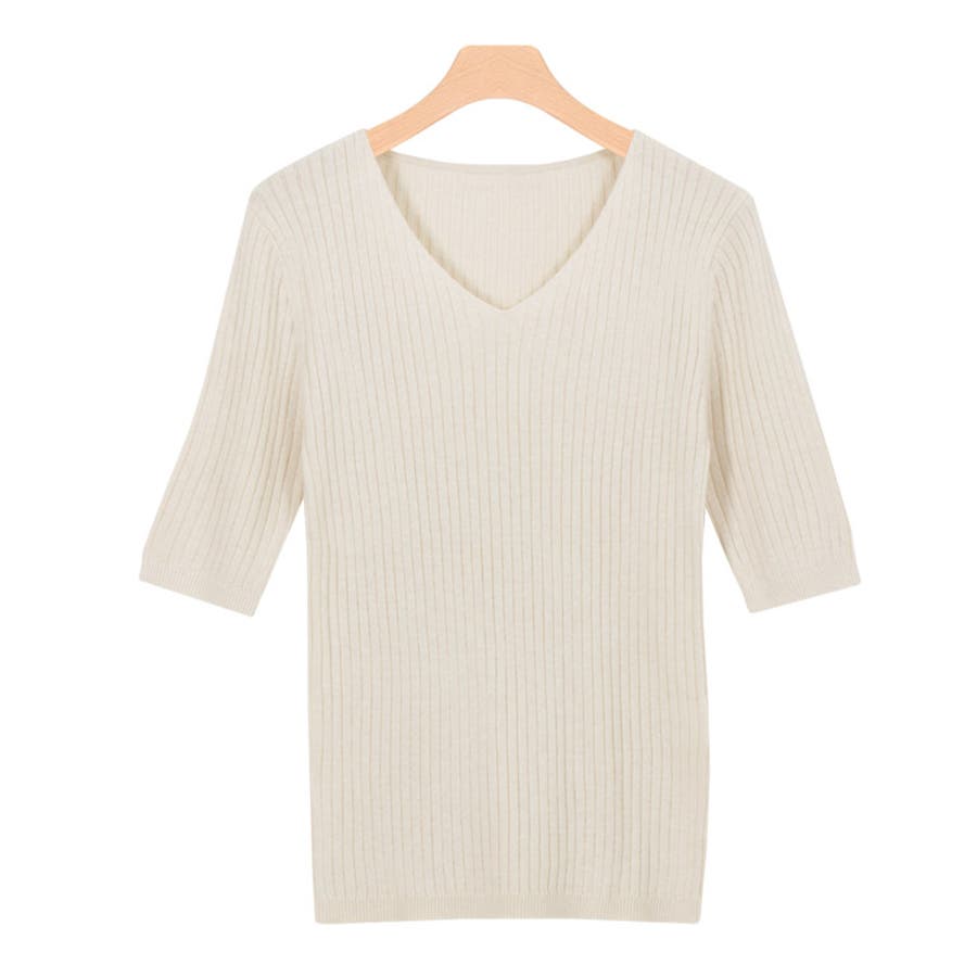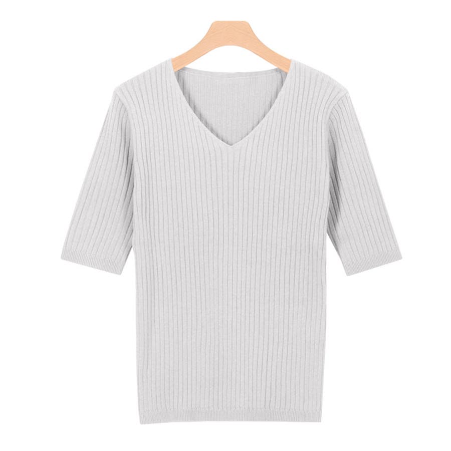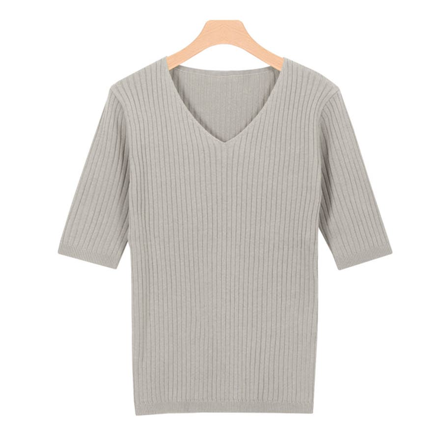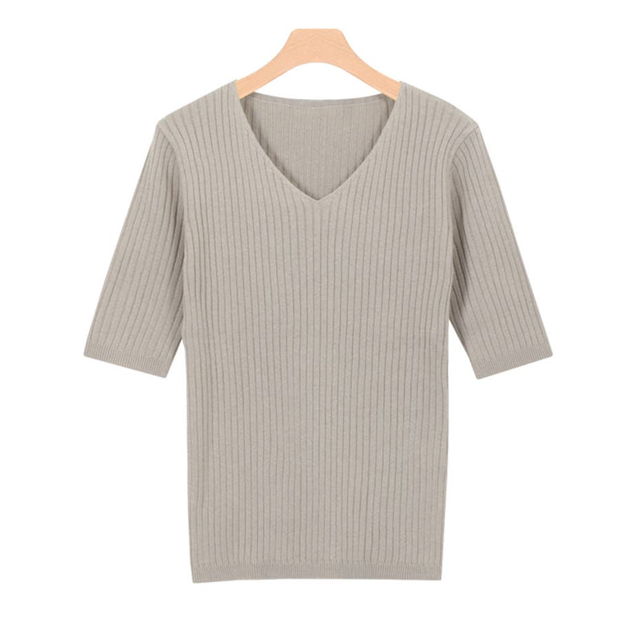 デコルテラインをきれいに見せてくれるVネックとシンプルでどんなボトムスともマッチするUネックの2ネックから選べるところも嬉しいポイント◎リブ編みがシンプルながらも表情豊かなので着回しできる一枚です。